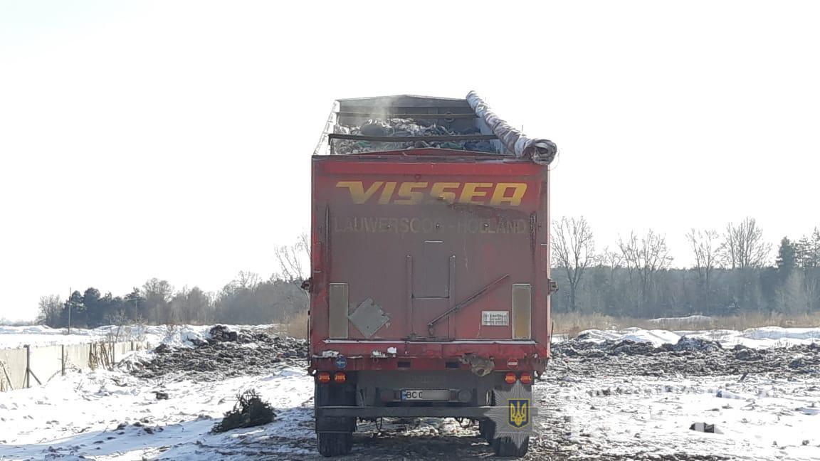 В пятницу, 25 января, правоохранители заметили два грузовика со львовскими номерами, которые выгружали мусор на незаконной стихийной свалке в Киевской области. Об этом сообщает Отдел коммуникации ГУ НП в Киевской области