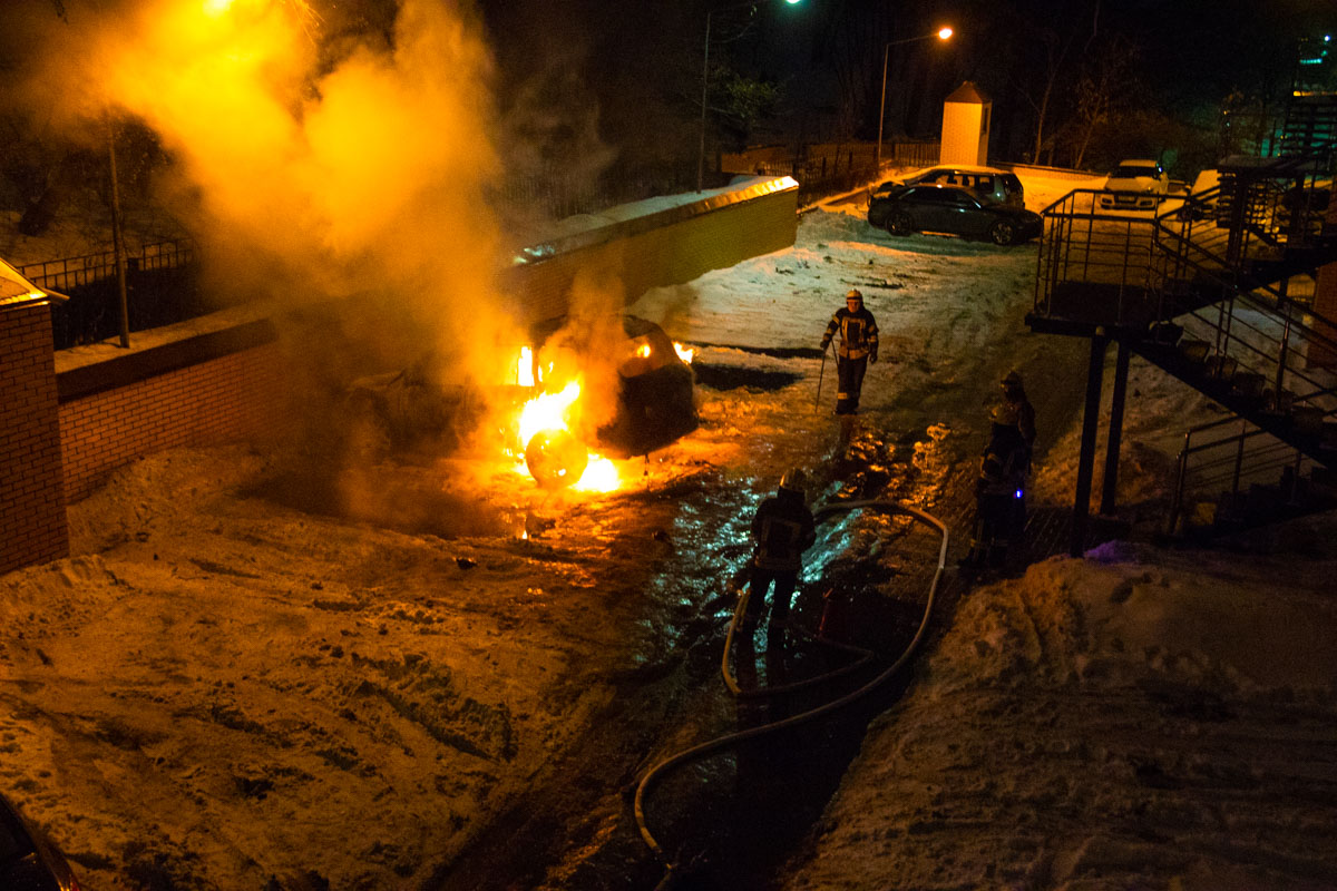 Пожар произошел на Печерске на улице Анри Барбюса 5в после двух ночи. Когда спасатели прибыли на место пожара машина уже была объята огнем.