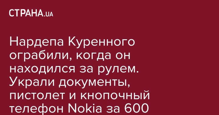 Нардепа Куренного ограбили, когда он находился за рулем. Украли документы, пистолет и кнопочный телефон Nokia за 600 гривен