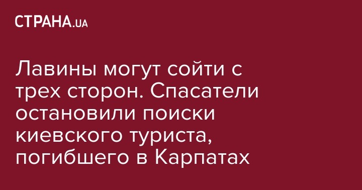 Лавины могут сойти с трех сторон. Спасатели остановили поиски киевского туриста, погибшего в Карпатах