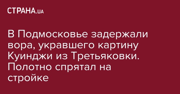 В Подмосковье задержали вора, укравшего картину Куинджи из Третьяковки. Полотно спрятал на стройке