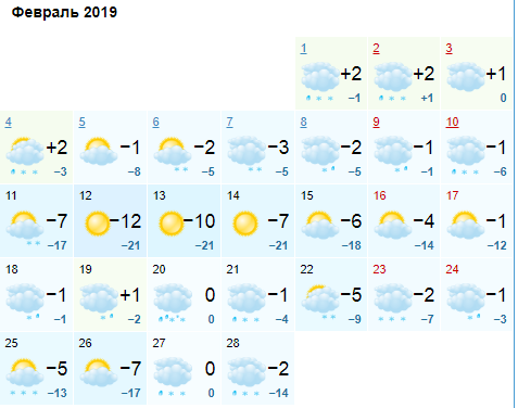 По данным ресурса Gismeteo, февраль в столице начнется с оттепели: до +2 днем. Вторая неделя месяца будет прохладнее: температура снизится до -1...-3 днем. А с 11 по 16 февраля ударят морозы до -4...-12 днем и до -21 ночью.