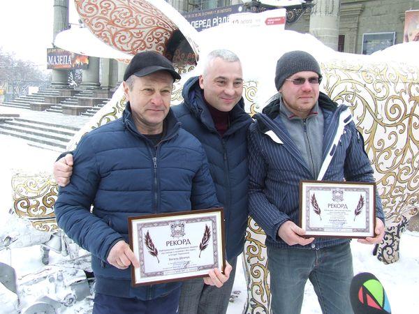 Любопытно, что 55-летний Василий Шевчук был не одинок в стремлении стать рекордсменом. Пока он лежал под снегом 37-летний Андрей Балабух из Гусятинского района завязывал в узлы гвозди. Мужчина установил рекорд, завязав голыми руками за 1 минуту 11 секунд в узел два металлических гвозди длиной 30 см.