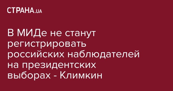 Глава МИД Украины 9 января сообщил, что в письме, направленном в адрес директора БДИПЧ ОБСЕ Ингиборге Солрун Гисладоттир с приглашением направить наблюдательную миссию на президентские выборы в Украине отметил, что МИД не будет принимать заявки от российских наблюдателей.