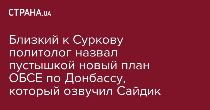 Близкий к Суркову политолог назвал пустышкой новый план ОБСЕ по Донбассу, который озвучил Сайдик