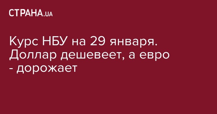 Национальный банк Украины (НБУ) установил официальный курс основных валют по отношению к гривне на вторник, 29 января. По сравнению с предыдущим банковским днем, доллар незначительно подешевел, а евро - немного подорожал. Об этом свидетельствует данные, опубликованные на сайте регулятора