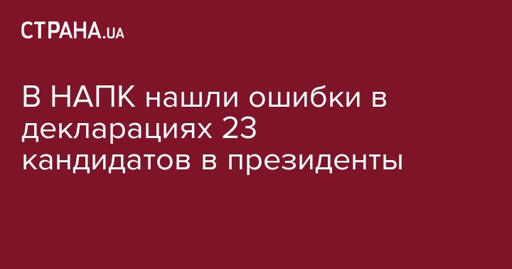 В 2019 году Национальное агентство по предупреждению коррупции впервые привлечено к проверки деклараций кандидатов в президенты Украины. По данным НАПК, по состоянию на 29 января было проверено 23 декларации, во всех были допущены ошибки и неточности. Об этом сообщает пресс-служба НАПК