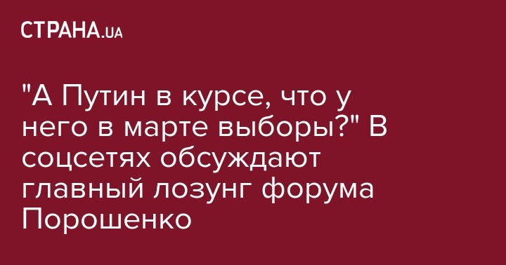 "А Путин в курсе, что у него в марте выборы?" В соцсетях обсуждают главный лозунг форума Порошенко