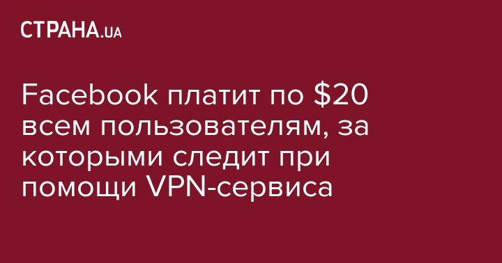 Выяснилось, что Facebook платит пользователям в возрасте от 13 до 35 лет по 20 долларов в месяц за установку и использование VPN-сервиса Facebook Research еще с 2016 года. Также оплачивается привлечение новых клиентов. Кроме данных сервиса, компания собирает от пользователей скриншоты истории их заказов на сайте Amazon.