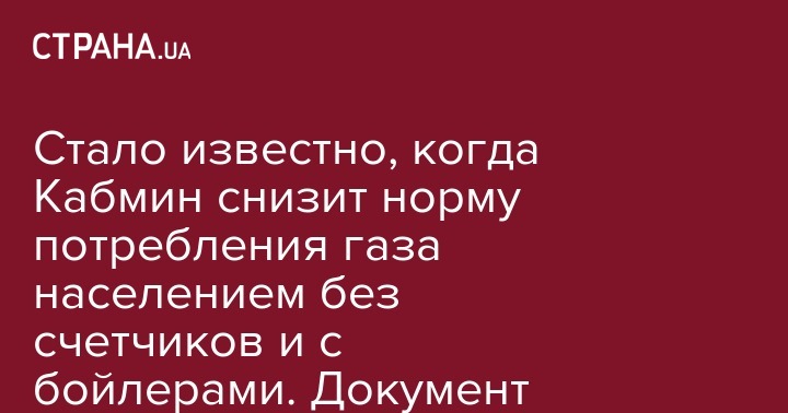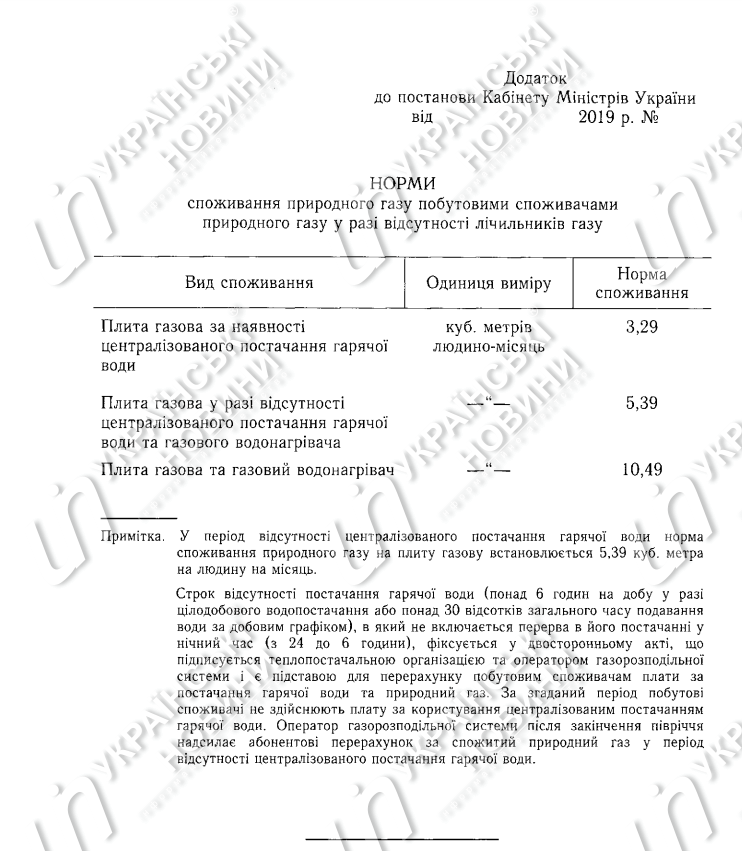 Также Кабмин снизил норму потребления газа для потребителей при отсутствии централизованного горячего водоснабжения и газового водонагревателя с 18,3 кубометров до 5,39 и для тех, кто использует газовую плиту и водонагреватель с 23,6 кубометров до 10,49.