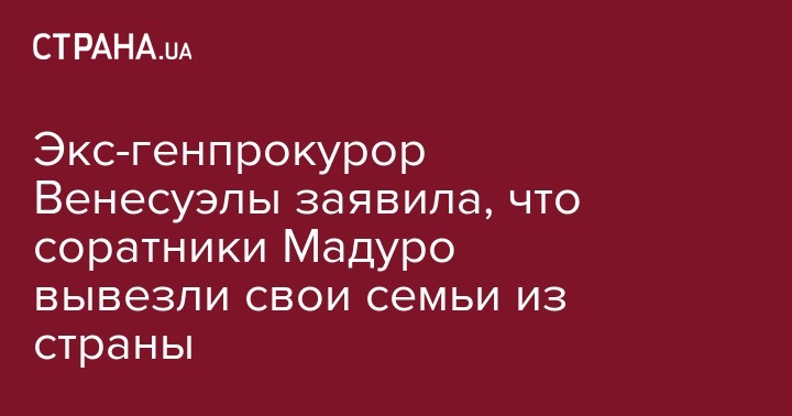 Ближайшие соратники президента Венесуэлы Николаса Мадуро уже начали вывозить из страны свои семьи. Об этом заявила бывший генеральный прокурор Венесуэлы Луиса Ортега Диас, передает ТАСС со ссылкой на канал NTN24.