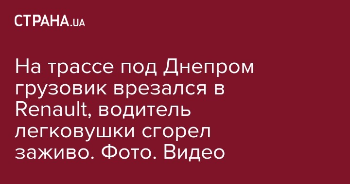 На трассе под Днепром грузовик врезался в Renault, водитель легковушки сгорел заживо. Фото. Видео