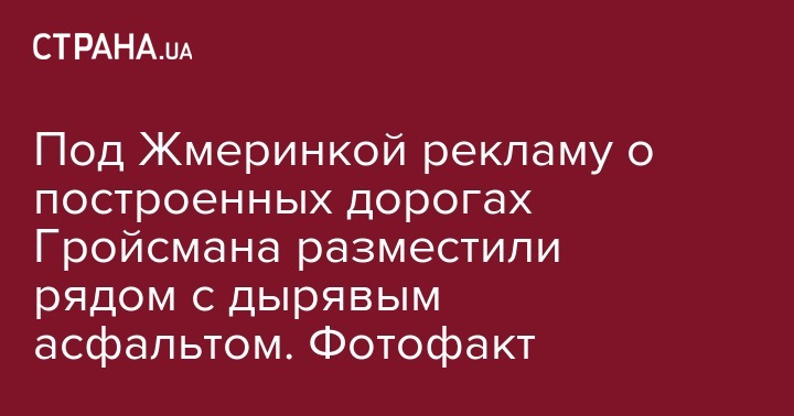 Под Жмеринкой рекламу о построенных дорогах Гройсмана разместили рядом с дырявым асфальтом. Фотофакт