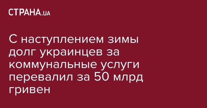 В ноябре долг населения за потребленные жилищно-коммунальные услуги увеличился на 21%, или на 7 516,7 млн гривен до 43 375,5 млн гривен по сравнению с октябрем.