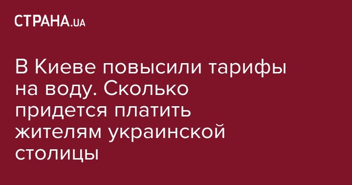 Согласно решению, принятому нацкомиссией на очередном заседании, тариф на услугу по централизованному снабжению холодной водой, водоотводу (с использованием внутридомовых систем) устанавливается в размере 21,756 грн (в т. ч. НДС 3,626 грн), что на 11% больше текущего тарифа 19,596 грн за 1 куб. м. Отмечается, что тариф на услуги по централизованному водоснабжению и водоотводу для потребителей Киева были повышены на 11,4% до размера 20,376 грн (в т. ч. НДС 3,396 грн) за 1 куб. м.