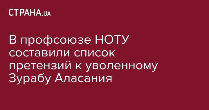 В профсоюзе Национальной общественной телерадиокомпании Украины (НОТУ) обвинили лишенного должности главы телеканала Зураба Аласанию в ряде злоупотреблений. Накануне он сам показал документ с причинами увольнения, где среди прочих значилось, что его "канал не осветил оперативно либо не осветил вообще (кроме коротких упоминаний в новостях) перечисленных событий с участием президента".