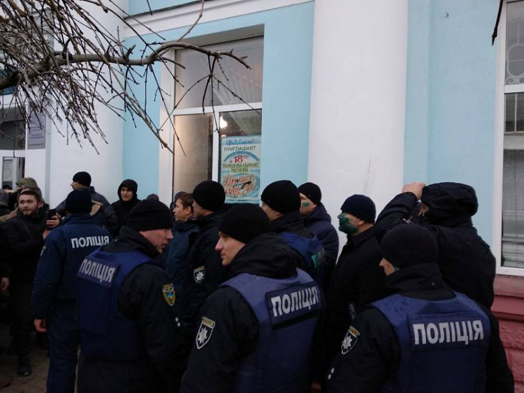 "Власть привезла около 50 боевиков в балаклавах, чтобы сорвать мне встречу с людьми. Молодчики вели себя агрессивно. Перед встречей, захватили ДК. Выталкивали на улицу людей. Полиция бездействовала", - написал он на своей странице в ФБ.