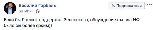 "Если бы Яценюк поддержал Зеленского, обсуждение съезда НФ было бы более ярким))".