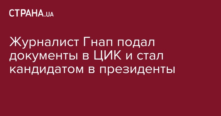 В воскресенье, 3 февраля, журналист Дмитрий Гнап подал в Центральную избирательную комиссию (ЦИК) документы, необходимые для регистрации кандидатом в президенты Украины. Трансляция велась на странице Гнапа в Facebook.