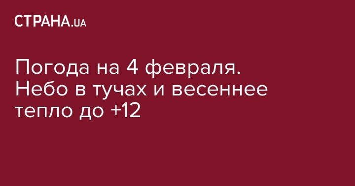 В понедельник, 4 февраля, в Украине снова прогнозируют весеннюю оттепель.  Как сообщается на сайте Укргидрометцентра, в южных и центральных регионах днем выглянет солнце, а на остальной территории страны будет тоже тепло, но пасмурно. В среднем температура в Украине составит +6...+ 8 градусов.