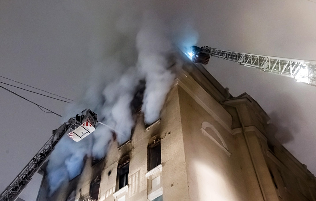 В ночь на понедельник, 4 февраля, в самом центре Москвы, в доме на Никитском бульваре вспыхнул сильный пожар. Площадь возгорания составила от 750 до 1000 кв. метров, в здании обрушились перекрытия между 5 и 6 этажами. В огне погибли четыре человека, передает Интерфакс.