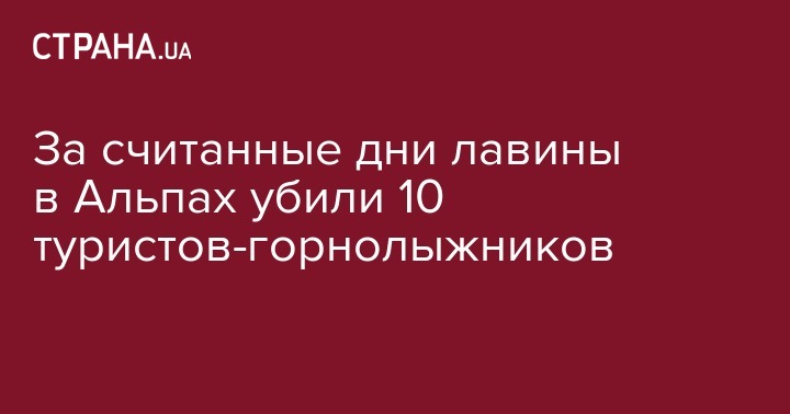 Не менее 10 человек стали жертвами схода лавин в выходные на горнолыжных курортах в Альпах, сообщают в понедельник французская радиостанция Europe 1.