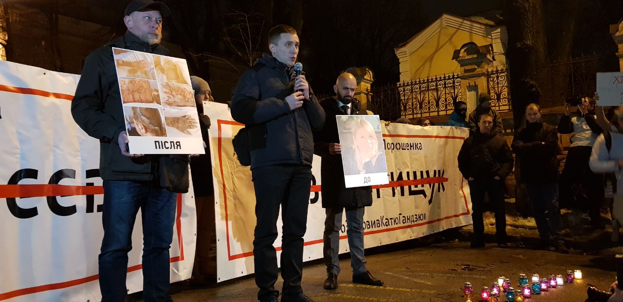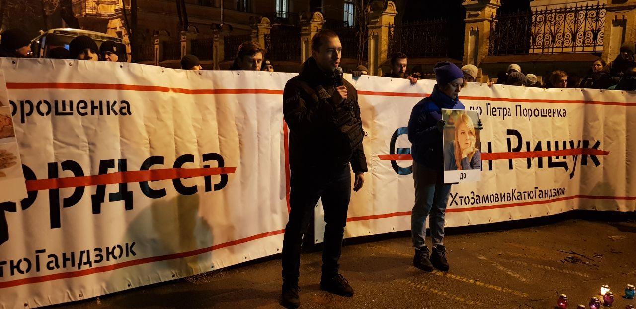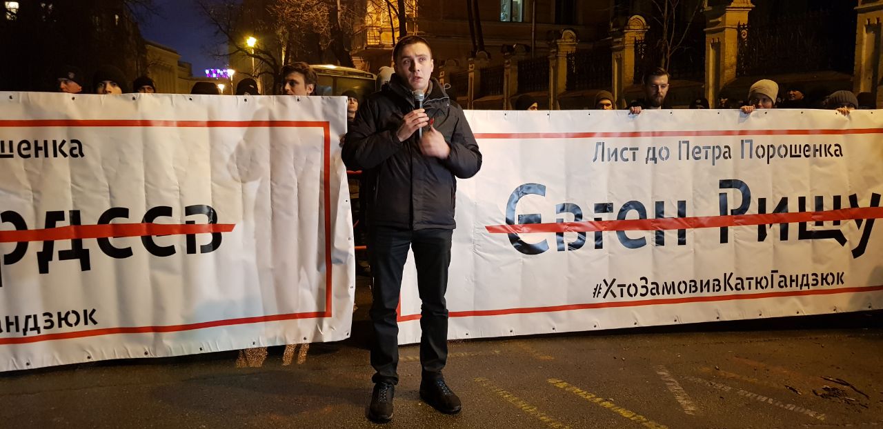 Сергей Стерненко заявил, что он хочет, чтобы в нашей стране не убивали людей и это не оставалось безнаказанным. Он также сказал,что требует от Порошенко освободить от должностей подозреваемых, и если этого не произойдет, то он не видит разницы между Порошенко и убийцами Екатерины Гандзюк.