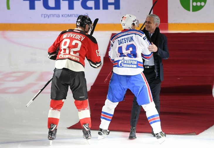 Бывший тренер Манчестер Юнайтед Жозе Моуринью снова в центре внимания. Вчера, 4 февраля, он буквально стал героем дня, после того как не удержался и шлепнулся на лед во время символичного вбрасывания шайбы на матче Континентальной хоккейной лиги (КХЛ).