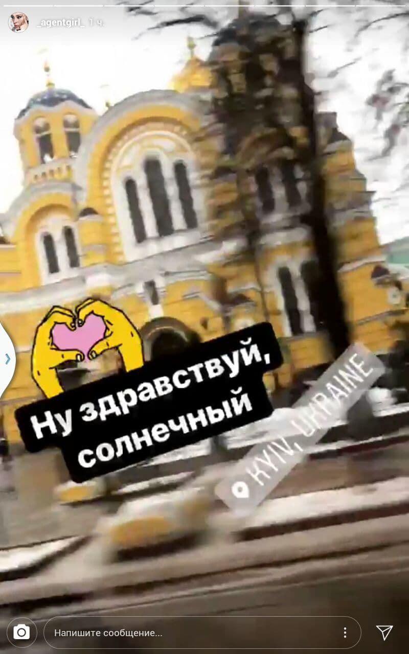В своем Instagram-сториз агент-герл опубликовала фотографию Владимирского храма с подписью "Ну здравствуй, солнечный" и указала в геолокации "Киев. Украина".