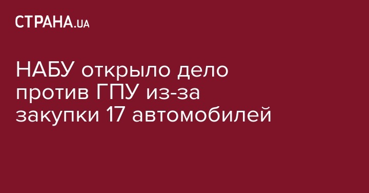 Национальное антикоррупционное бюро (НАБУ) открыло уголовное производство по факту законности закупки Генеральной прокуратурой 17 автомобилей, сообщают Украинские новости со ссылкой на источник в ведомстве.