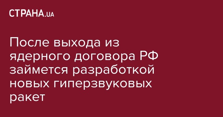 После выхода из ядерного договора РФ займется разработкой новых гиперзвуковых ракет