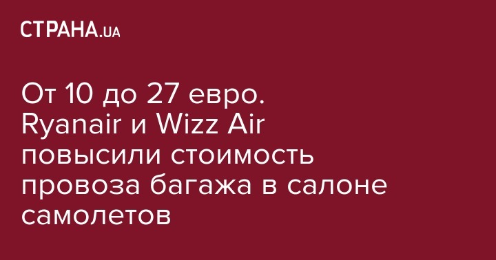 Wizz Air повысил стоимость провоза небольшого багажа с 7 до 9 евро. Теперь перевозка чемодана до 10 кг в качестве багажа стоит от 9 до 24 евро в низкий сезон и от 12 до 27 евро в высокий сезон.