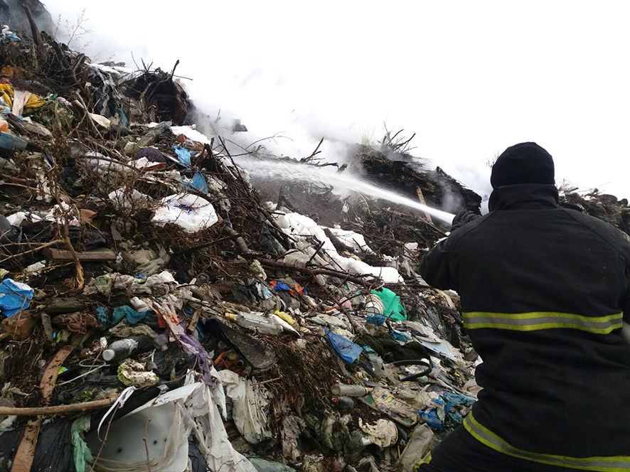 Под Полтавой уже вторые сутки тушат пожар на свалке