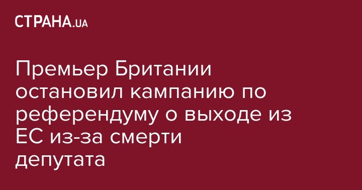 В Британии приостановили кампанию по референдуму о Брекзите (выходе из ЕС). Это произошло после смерти парламентария, члена Лейбористской партии Джо Кокс, которую сегодня застрелил агрессивный мужчина. О приостановке кампании в своем twitter написал британский премьер Дэвид Кэммерон.