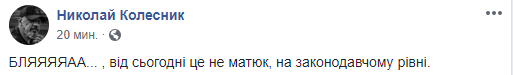 "БЛ***..., с сегодняшнего дня это не матюк, на законодательном уровне", - отреагировал депутат горсовета Кривого Рога (Днепропетровская область) Николай Колесник.