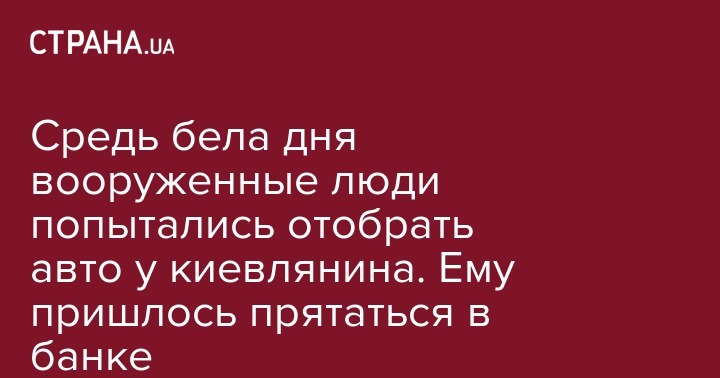 Средь бела дня вооруженные люди попытались отобрать авто у киевлянина. Ему пришлось прятаться в банке