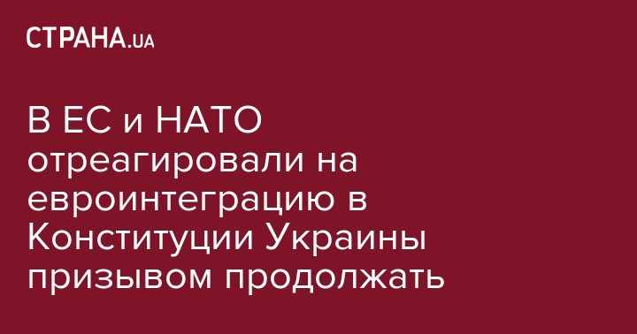В ЕС и НАТО заявили про "признание евроатлантических стремлений Украины" и подчеркнули необходимость "продвижения на пути реформ". Так в Брюсселе отреагировали на голосование в Раде о закреплении в Конституции Украины намерения вступить в эти организации.