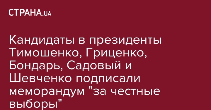 Юлия Тимошенко, Анатолий Гриценко, Виктор Бондарь, Андрей Садовый и Александр Шевченко подписали "меморандум за честные выборы", направленный на предотвращение фальсификаций.
