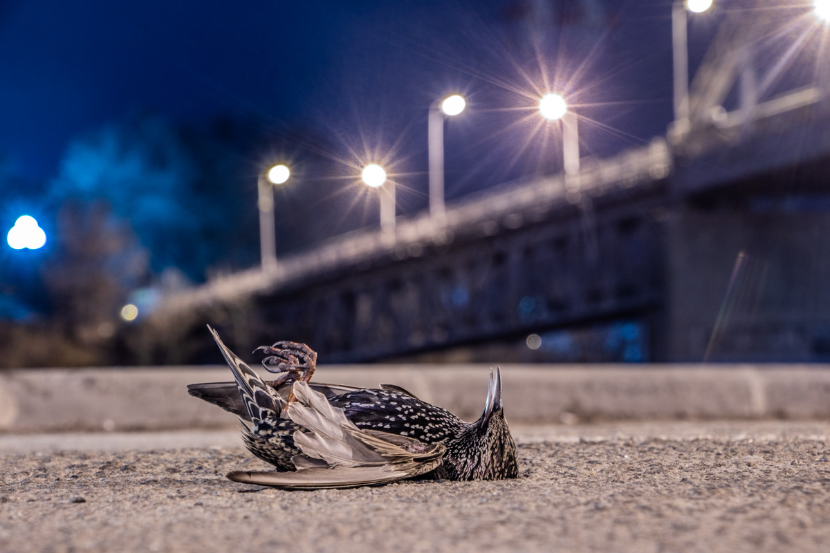 В Днепре с неба упали десятки скворцов. Дорога усыпана мертвыми птицами. Фото