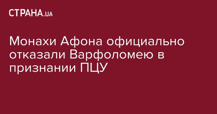 Монахи Афона официально отказали Варфоломею в признании ПЦУ