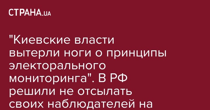 "Расцениваем отказ Украины от аккредитации российских наблюдателей как грубейшее нарушение международных обязательств в области общепринятых электоральных процедур. Тем самым причинен значительный урон имиджу БДИПЧ, которое позиционирует себя в качестве блюстителей "золотого стандарта" принципов электорального мониторинга. Киевские власти, по сути, "вытерли ноги" об эти стандарты, продемонстрировав в очередной раз полнейшее пренебрежение нормами международного права и собственными обязательствами", - сказано в заявлении.