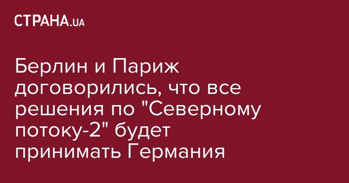 Таким образом Берлин и Париж договорились, что все решения по "Северному потоку-2" будет принимать Германия.