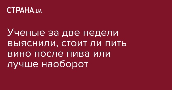 Ученые развеяли популярный миф о том, что вино лучше пить после пива - в противном случае последует сильное похмелье. На самом деле, говорят исследователи, похмелье возникнет в любом случае, сообщает BBC Украина