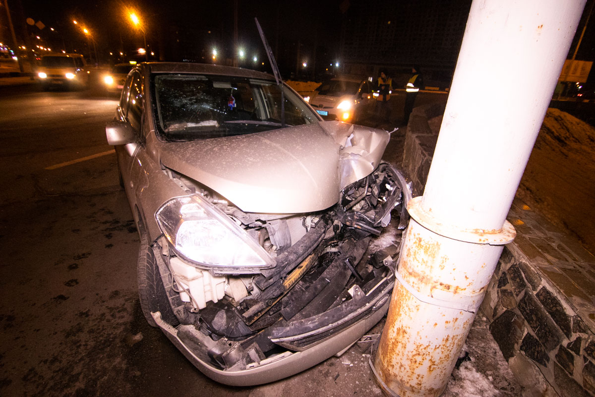 Авария случилась около 02:40. По предварительной информации, Nissan двигался по Маяковского в сторону улицы Милославской. Перед кругом, на перекрестке с улицей Марины Цветаевой, автомобиль врезался в столб. В момент аварии в салоне был водитель и девушка-пассажир.