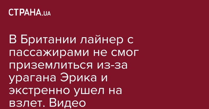 В Британии лайнер с пассажирами не смог приземлиться из-за урагана Эрика и экстренно ушел на взлет. Видео
