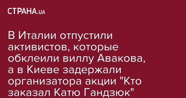 В Италии полиция отпустила  активистов, которые обклеили виллу министра внутренних дел Арсена Авакова плакатами с фото убитых украинских активистов. Об этом в Facebook сообщил блогер Антон Ходза.