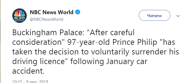 И в итоге принц решил отказаться от своих водительских прав и больше никогда не садиться за руль. Об этом в Twitter сообщает NBC со ссылкой на заявление Букингемского дворца.