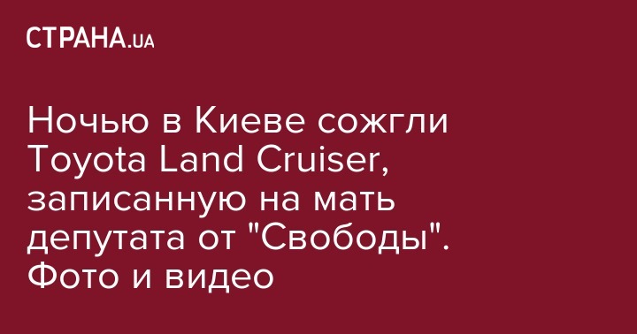 В ночь с 11 на 12 февраля в Киеве сгорел автомобиль Toyota Land Cruiser, который принадлежал семье Владимира Назаренко, депутата Киевского городского совета от "Свободы". Об этом пишет "Информатор"