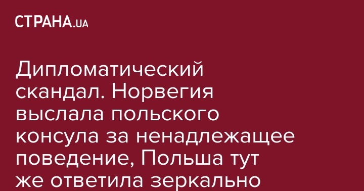Дипломатический скандал. Норвегия выслала польского консула за ненадлежащее поведение, Польша тут же ответила зеркально