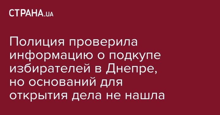 В Днепре полиция проверила информацию о подкупе избирателей в помещении местного городского совета, но оснований для заведения дела и внесения информации в ЕРДР не обнаружила. Об этом сообщает Отдел коммуникаций ГУ НП в Днепропетровской области